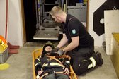 Im Anschluss wurde die TMB im Detail vorgestellt. Die Ausbildner erklärten, worauf bei der Wahl des Aufstellungsplatzes zu achten ist und gaben einen Überblick über die verschiedenen Einsatzmöglichkeiten. Besonders eindrucksvoll war die Personenrettung aus der Dachbodenluke mittels Korbschleiftrage, die praxisnah beübt wurde.