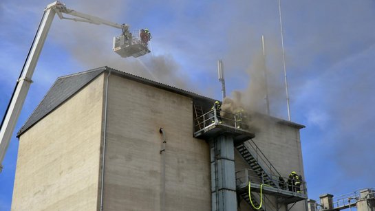 GARSTEN. Am 29. April, gegen 14:00 Uhr wurden die 5 Feuerwehren des Pflichtbereichs Garsten zu einem Brand eines Turmes, in ein ortsansässiges Bauunternehmen alarmiert. Bei der Ausfahrt des ersten Fahrzeuges konnte bereits aus der Ferne gesehen werden, dass dichter Rauch aus dem Dachbereich austrat, daher wurde sofort die Alarmstufe 2 alarmiert. Beim Eintreffen schlugen die Flammen bereits durch das Dach und dichter, schwarzer Rauch trat aus.