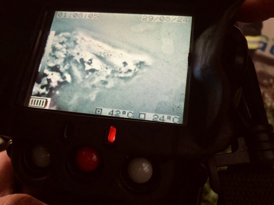 Zunächst wurde mit der Wärmebildkamera die genaue Lage des Glimmbrandes bestimmt, um gezielt vorgehen zu können. Die lokalisierten Glutnester wurden mit einem Gartenschlauch abgelöscht und somit eine mögliche Ausbreitung verhindert.