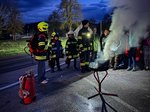 Zu Beginn der Übung erhielten die Jugendlichen eine kurze theoretische Einführung in das Thema Brandentstehung und Brandverlauf. Dabei wurde besonders darauf eingegangen, wie schnell sich ein ausgetrockneter Christbaum entzünden kann und welche Gefahren davon ausgehen. Im Anschluss wurde dies eindrucksvoll in der Praxis vorgeführt. Innerhalb kürzester Zeit stand der Christbaum in Vollbrand, wodurch den Jugendlichen die enorme Geschwindigkeit und Intensität eines solchen Brandes vermittelt wurde.