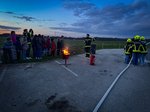 Nach der Demonstration konnten die Mitglieder der Feuerwehrjugend selbst aktiv werden. Mit großem Engagement wurde die Brandbekämpfung geübt. Zum Einsatz kamen dabei einerseits die klassische Kübelspritze, sowie die neu angekauften Löschrucksäcke. Zusätzlich wurde auch die richtige Handhabung des Hohlstrahlrohres geübt.