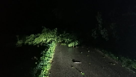 Ein zweiter umgestürzter Baum blockierte erneut die Straße in der Nähe des Sportplatzes Neuzeug. Auch dieser konnte rasch entfernt werden.