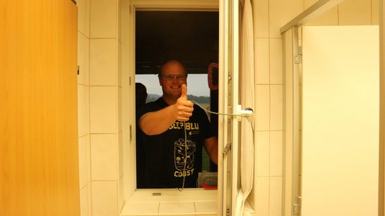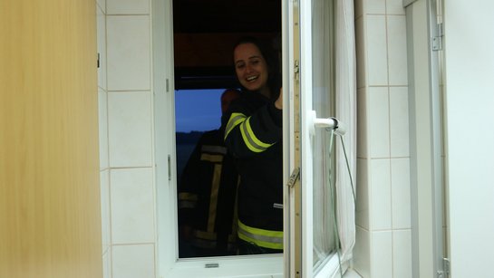 Als Abschluss wurde eine zerstörungsfreie Zutrittsmöglichkeit zu einem "verschlossenen" Gebäude gezeigt. Bei einem gekippten Fenster wurde mit den einfachsten Mitteln in wenigen Minuten ein Zutritt geschaffen.