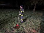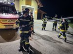 Im Anschluss folgte der praktische Teil der Übung. Dabei wurden die in der Feuerwehr verfügbaren Geräte intensiv beübt. Zum Einsatz kamen unter anderem Feuerwehrpatschen, Schaufeln, Krampen, Sappies sowie die neu angekauften Löschrucksäcke. Zusätzlich wurde auch der Einsatz des neuen Rauchvorhanges vorgestellt.