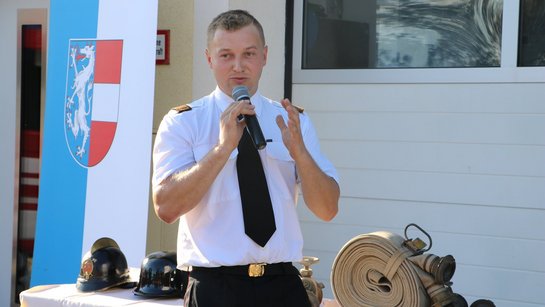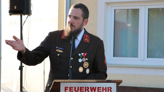 Nach der festlichen Messe und der Segnung des neuen Einsatzfahrzeuges führte OBM Reinhard Hehenberger durch den offiziellen Festakt und sorgte mit einer souveränen Moderation für eine stimmungsvolle und würdige Atmosphäre.